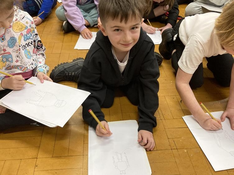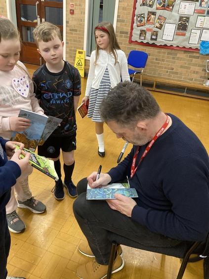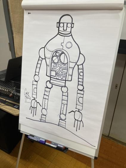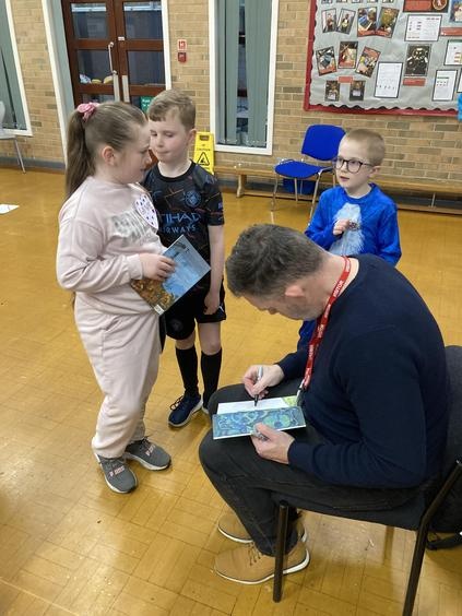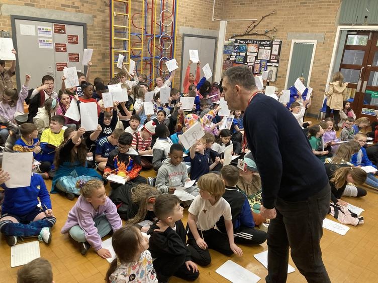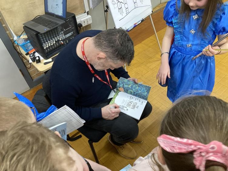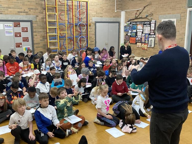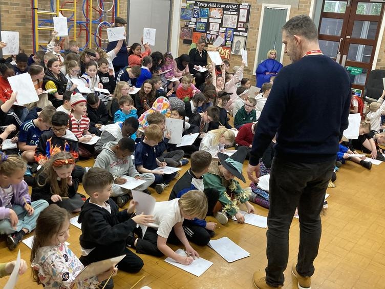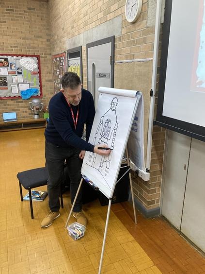 Years 3, 4, 5 and 6 were thrilled to welcome the fantastic author and illustrator Chris Mould to Lawns Park. Chris has been involved in writing and illustrating some extremely well-known books over his 30-year career, and he spent some time talking with the children about his illustrated version of 'The Iron Man' which our children read in LKS2. Chris discussed his career from childhood to present day and emphasised the challenges he went through at school as a little boy who found learning difficult. Fast-forward 40 years and Chris is the creator of numerous books and has worked on projects which have gone on to be made into movies such as, 'A Boy called Christmas.' All the while Chris is telling his story he is also leading a draw-along for the children of his Iron Man artwork so that all children had a souvenir of his visit. It was a fantastic opportunity for the children to be inspired by the brilliance of a famous author/illustrator and Chris really enjoyed his time with our children.