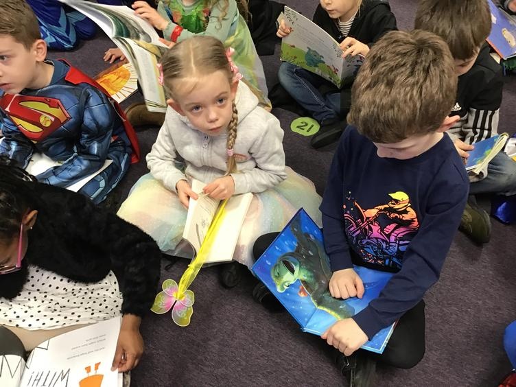Lawns Park celebrated World Book day with an exciting day of costumes, activities and - most importantly - books! The children and staff came to school in a whole variety of wacky and wonderful outfits which demonstrated come of their favourite characters as well as an adjective describing that character. We had a whole-school assembly to show off our outfits and then went back to classrooms where we took part in lots of different reading and book related activities. We also enjoyed some D.E.A.R time (Drop Everything And Read) throughout the day whenever the school bell rang. We had a fantastic day and really enjoyed hearing and talking all about our favourite books.