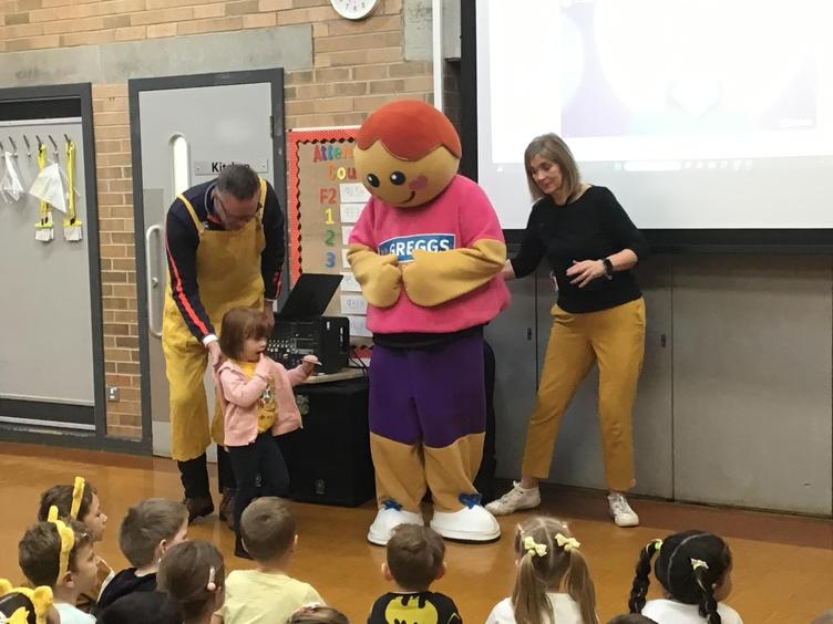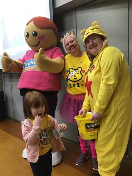 Well done and thank you to everyone who donated their spare change toward Children in Need this week. The children have been in friendly competition with each other to see how many Pudsey Bear faces they could cover with coins. F2 were the eventual winners, managing to cover eight whole faces in total, and as a school we raised £179.54. We were joined in our daily assembly by Greggs Foundation mascot 'Hope' who was out and about collecting donations. She dropped in to say hello and cheer us on with out fundraising. Thank you once again to everyone who helped with their donations.