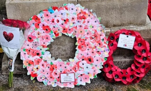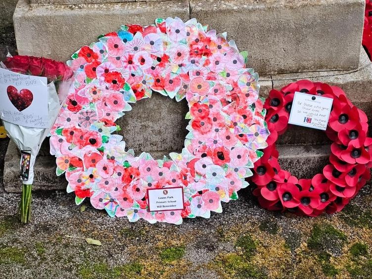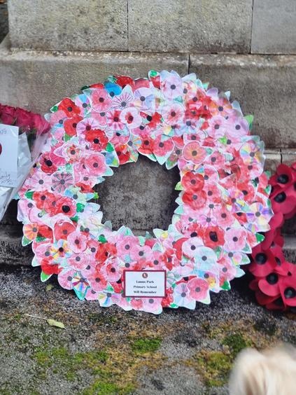 Lawns Park Primary School created a poppy wreath which was placed at the cenotaph in Farnley as a mark of respect for remembrance Sunday. All 235 children in school created their own personal poppy and these were then collected together in one wreath to commemorate the occasion. Some Lawns Park children then placed the wreath at the cenotaph on remembrance Sunday alongside our school governor and the Friends of Lawns Park.