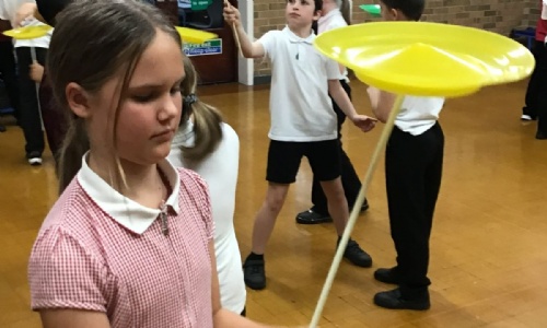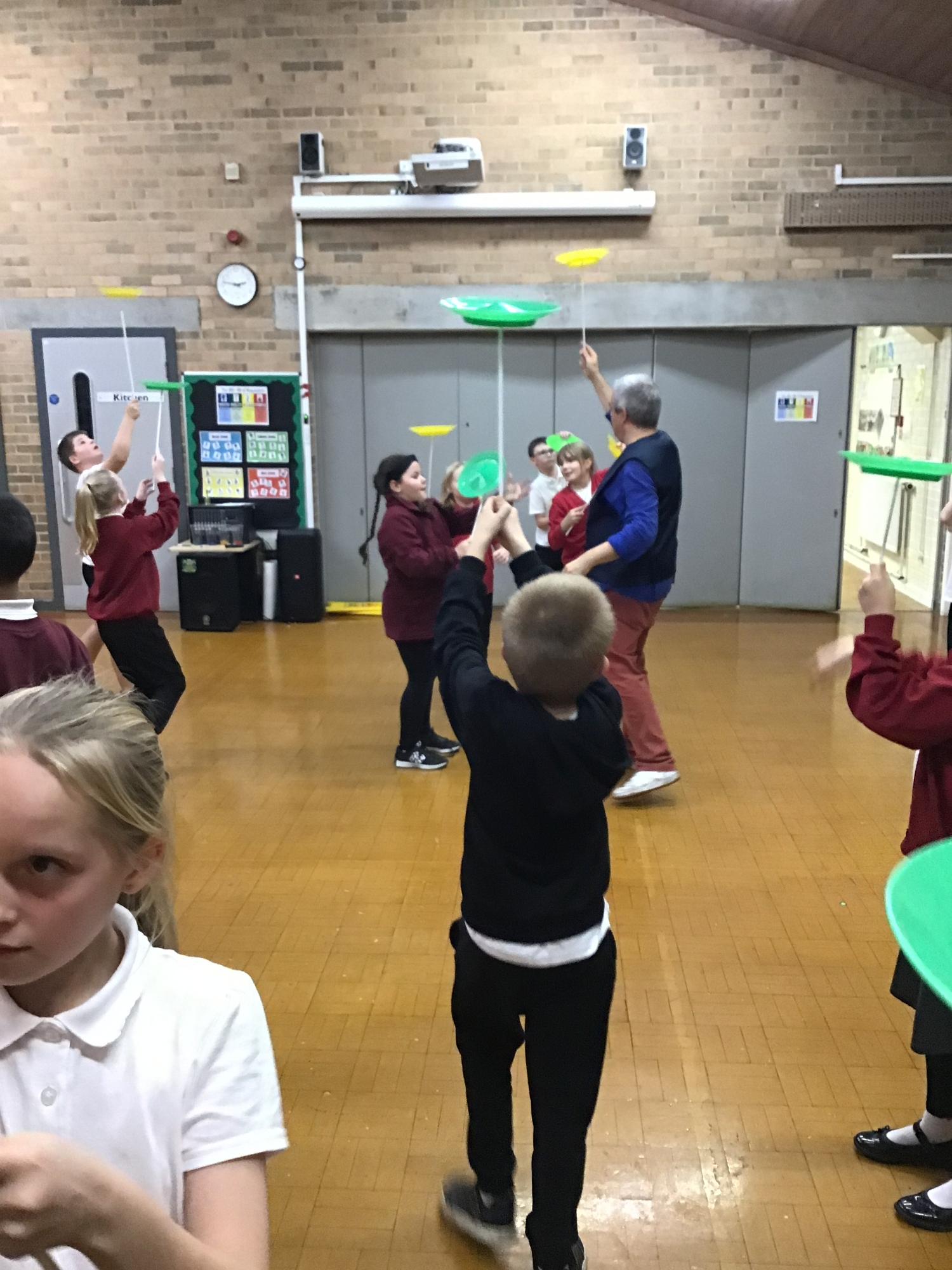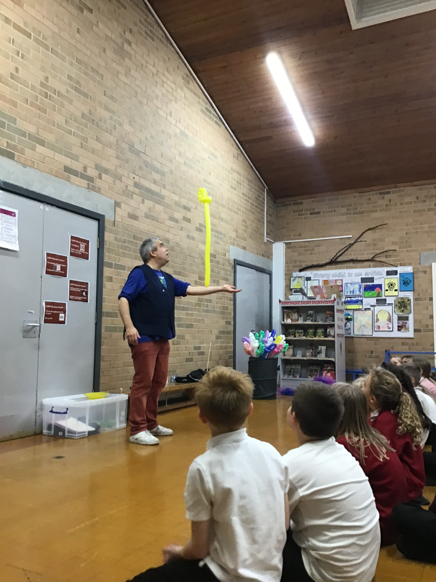 In Year 5, the classroom burst into excitement when the circus came to visit, filling the day with colour, laughter and incredible new skills. We were shown how to juggle using bright, floating scarves that drifted gently through the air as we practised, and we learnt to spin plates on sticks—something that looked impossible until suddenly it wasn’t. The magician taught us simple but amazing tricks that left us feeling like true performers, eager to show them off to friends and family. By the end of the day, we each walked away proudly holding a balloon sword, the perfect souvenir from a magical circus experience we’ll never forget.