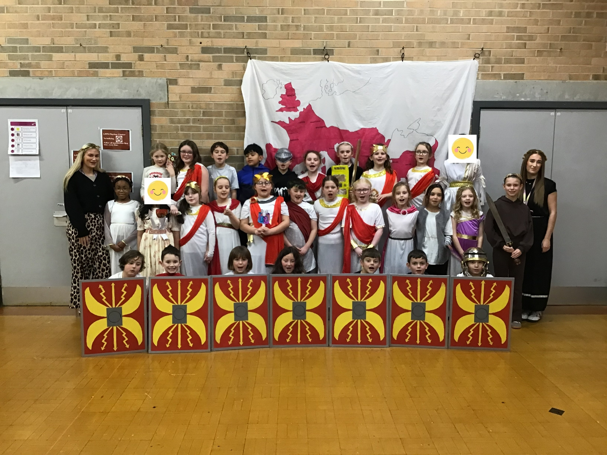 On Wednesday, Year 4 had the pleasure of taking part in an exciting day where we learnt all about the Romans. Joseph - from Ancient Visitor - came in to teach the children all about the Romans through a variety of fun-filled, engaging and immersive activities. We tried on Roman armour and explored a range of Roman artefacts to understand how soldiers and citizens lived. These artefacts included Roman coins - we had a great discussion about how the coins differ from the ones we use today, a toilet brush, a very odd sponge and a wax block which they used to write on. We also designed our own Roman village, thinking carefully about buildings and layout and even learnt to speak some Latin words and phrases. The children played traditional Roman games such as knuckles and took part in their own Roman battle to experience how the army trained. We also acted out Roman stories, which helped us remember key events and deepen our understanding in a fun and memorable way.