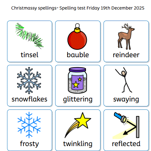 Spellings will be handed out on Friday, with the test taking place the following Friday 19th December 2025