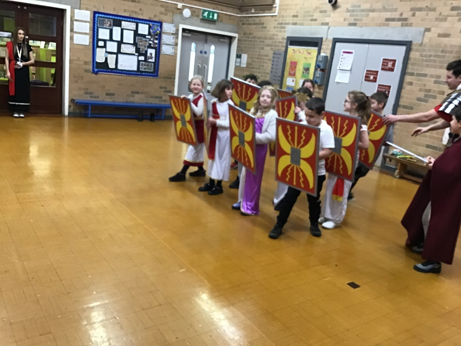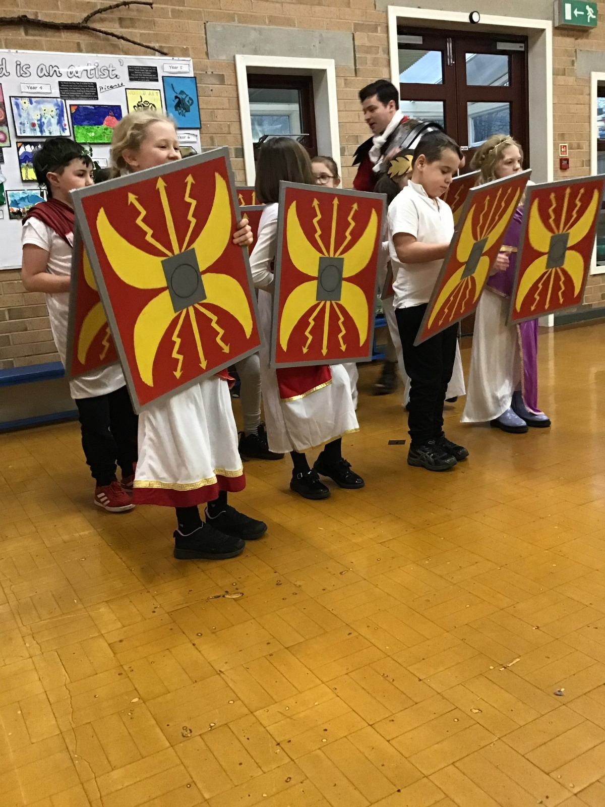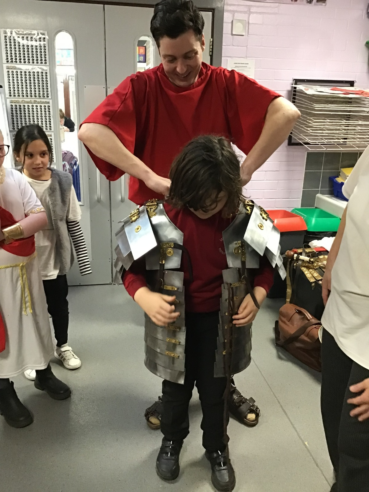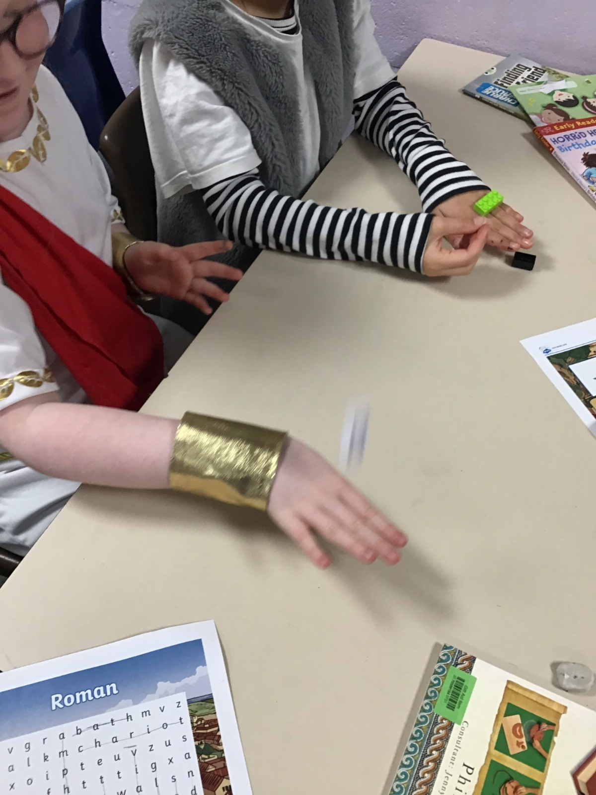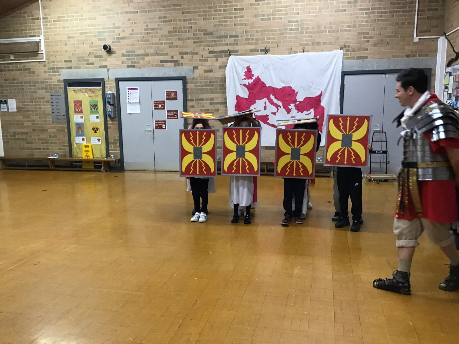 On Wednesday, Year 4 had the pleasure of taking part in an exciting day where we learnt all about the Romans. Joseph - from Ancient Visitor - came in to teach the children all about the Romans through a variety of fun-filled, engaging and immersive activities. We tried on Roman armour and explored a range of Roman artefacts to understand how soldiers and citizens lived. These artefacts included Roman coins - we had a great discussion about how the coins differ from the ones we use today, a toilet brush, a very odd sponge and a wax block which they used to write on. We also designed our own Roman village, thinking carefully about buildings and layout and even learnt to speak some Latin words and phrases. The children played traditional Roman games such as knuckles and took part in their own Roman battle to experience how the army trained. We also acted out Roman stories, which helped us remember key events and deepen our understanding in a fun and memorable way.