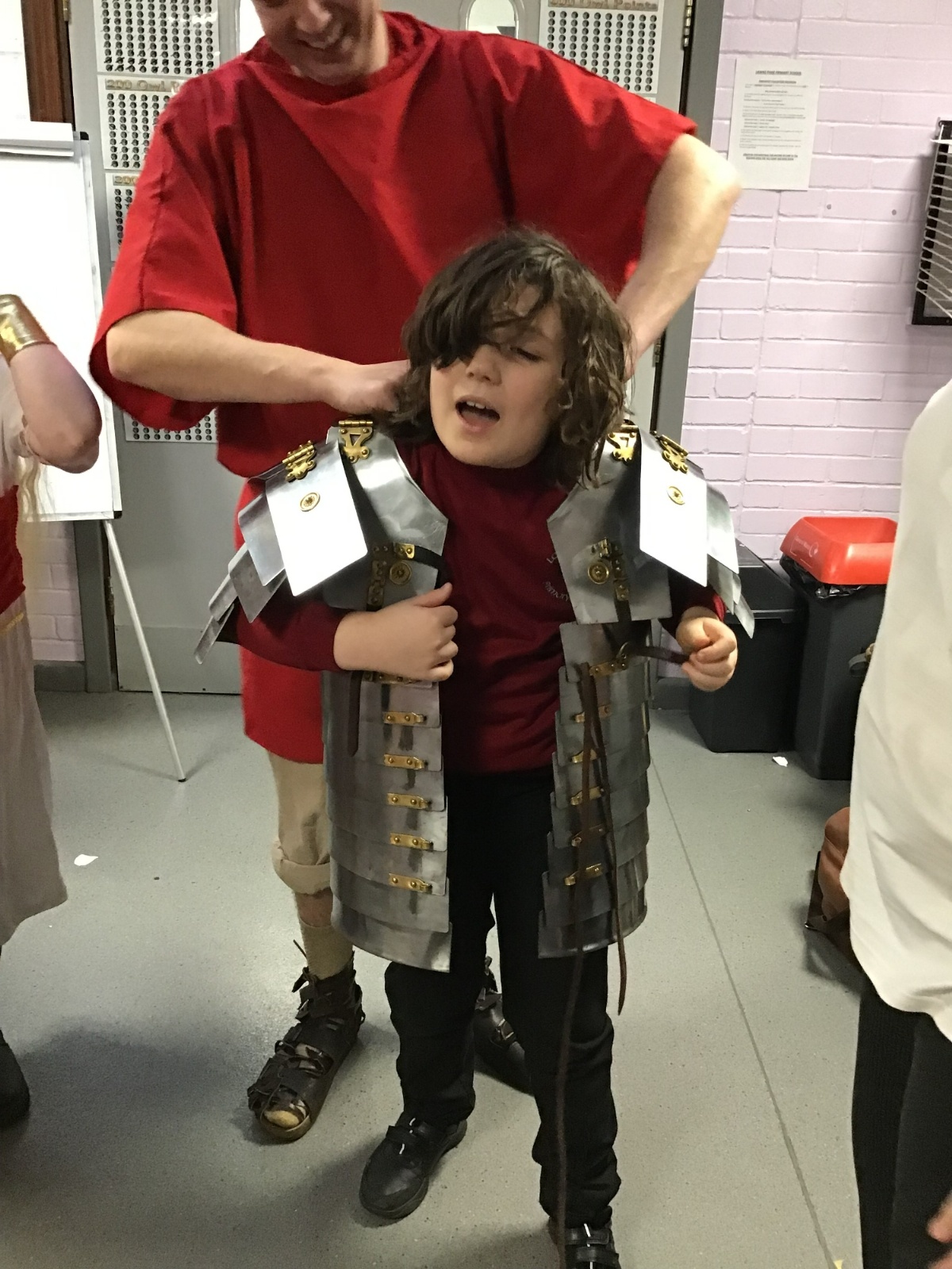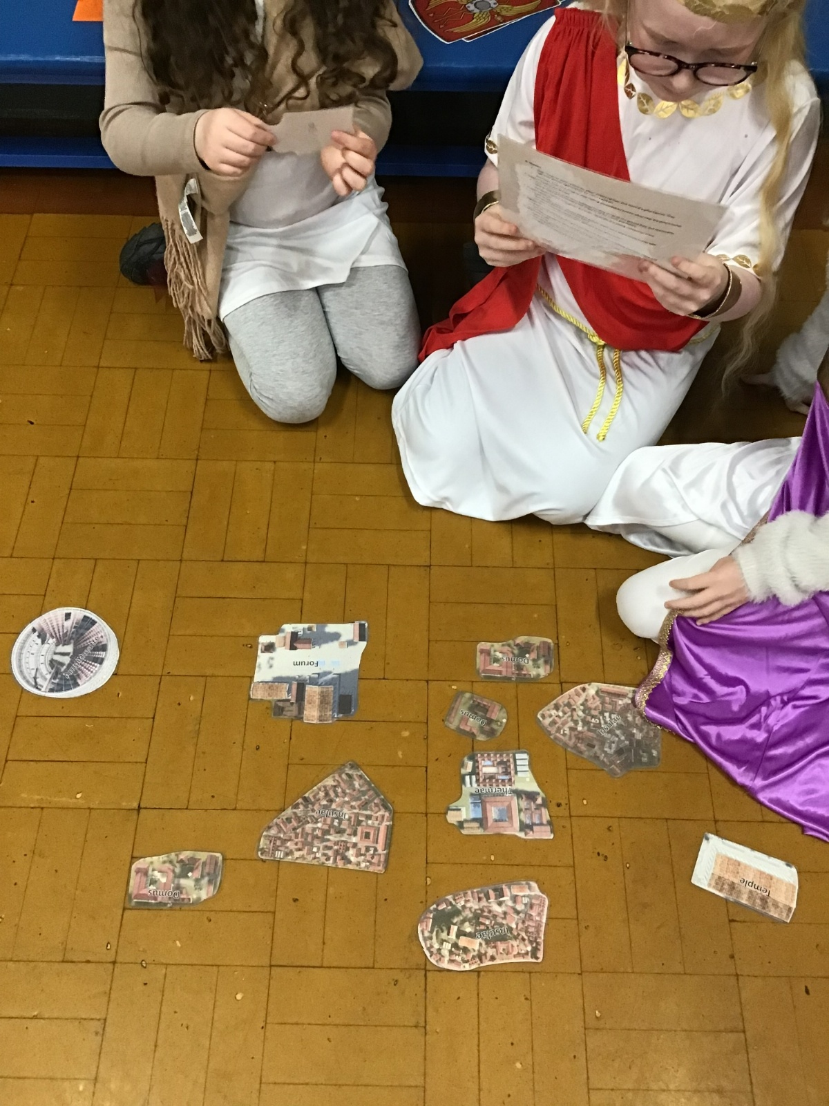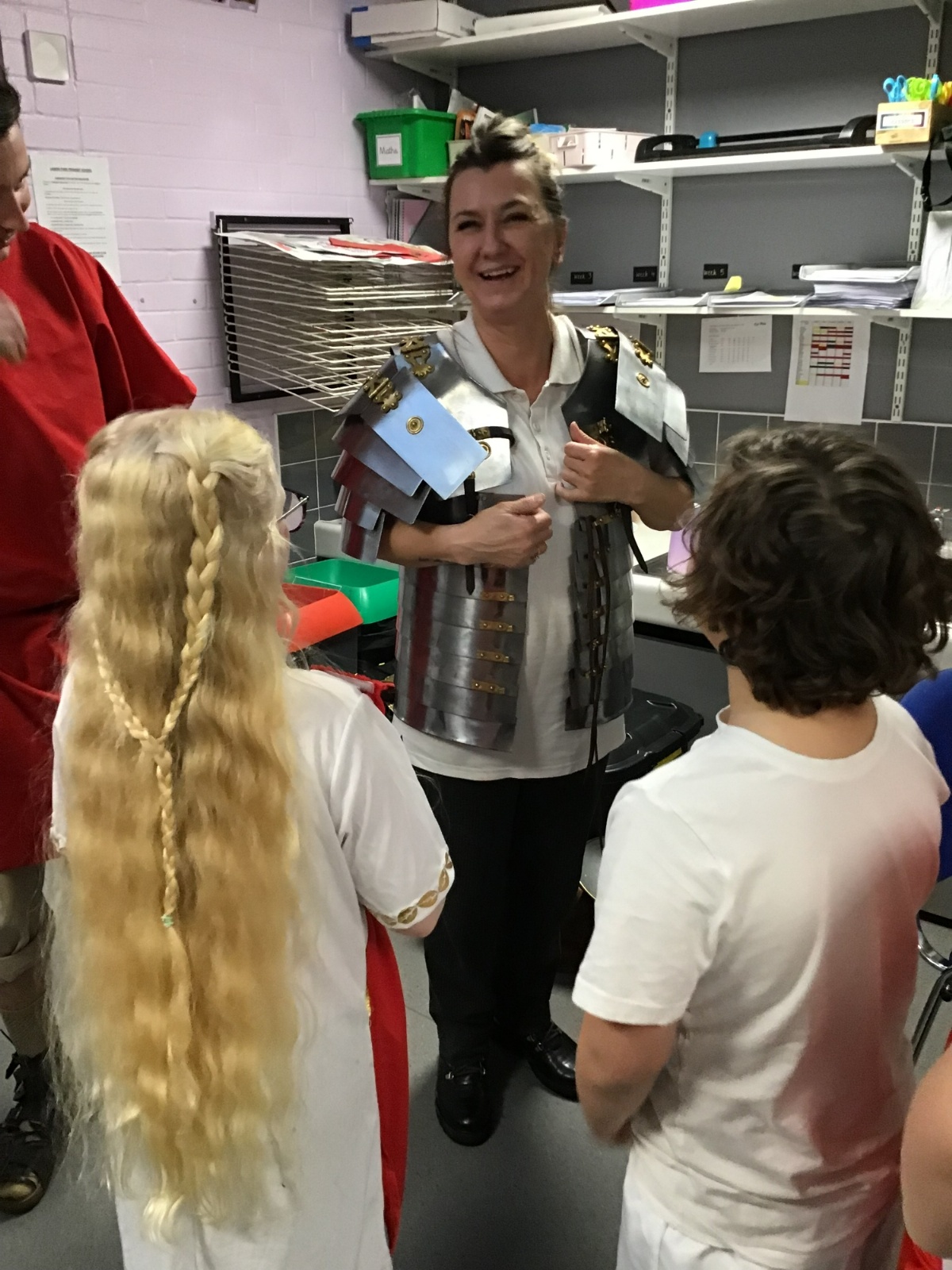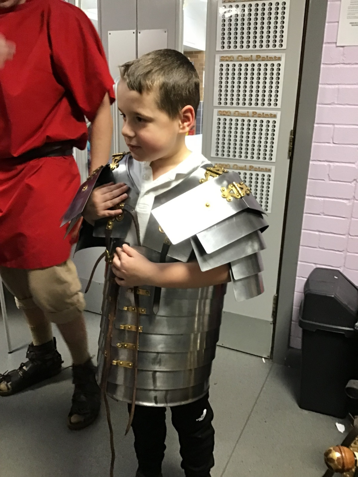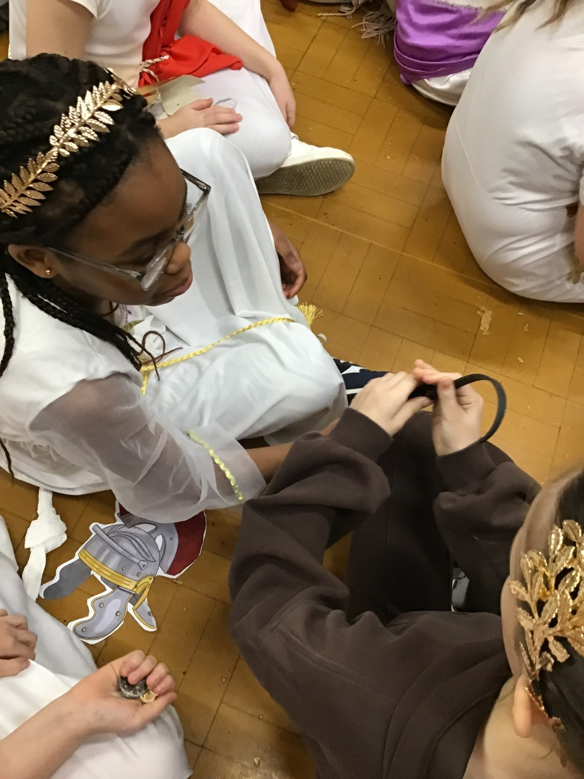 On Wednesday, Year 4 had the pleasure of taking part in an exciting day where we learnt all about the Romans. Joseph - from Ancient Visitor - came in to teach the children all about the Romans through a variety of fun-filled, engaging and immersive activities. We tried on Roman armour and explored a range of Roman artefacts to understand how soldiers and citizens lived. These artefacts included Roman coins - we had a great discussion about how the coins differ from the ones we use today, a toilet brush, a very odd sponge and a wax block which they used to write on. We also designed our own Roman village, thinking carefully about buildings and layout and even learnt to speak some Latin words and phrases. The children played traditional Roman games such as knuckles and took part in their own Roman battle to experience how the army trained. We also acted out Roman stories, which helped us remember key events and deepen our understanding in a fun and memorable way.
