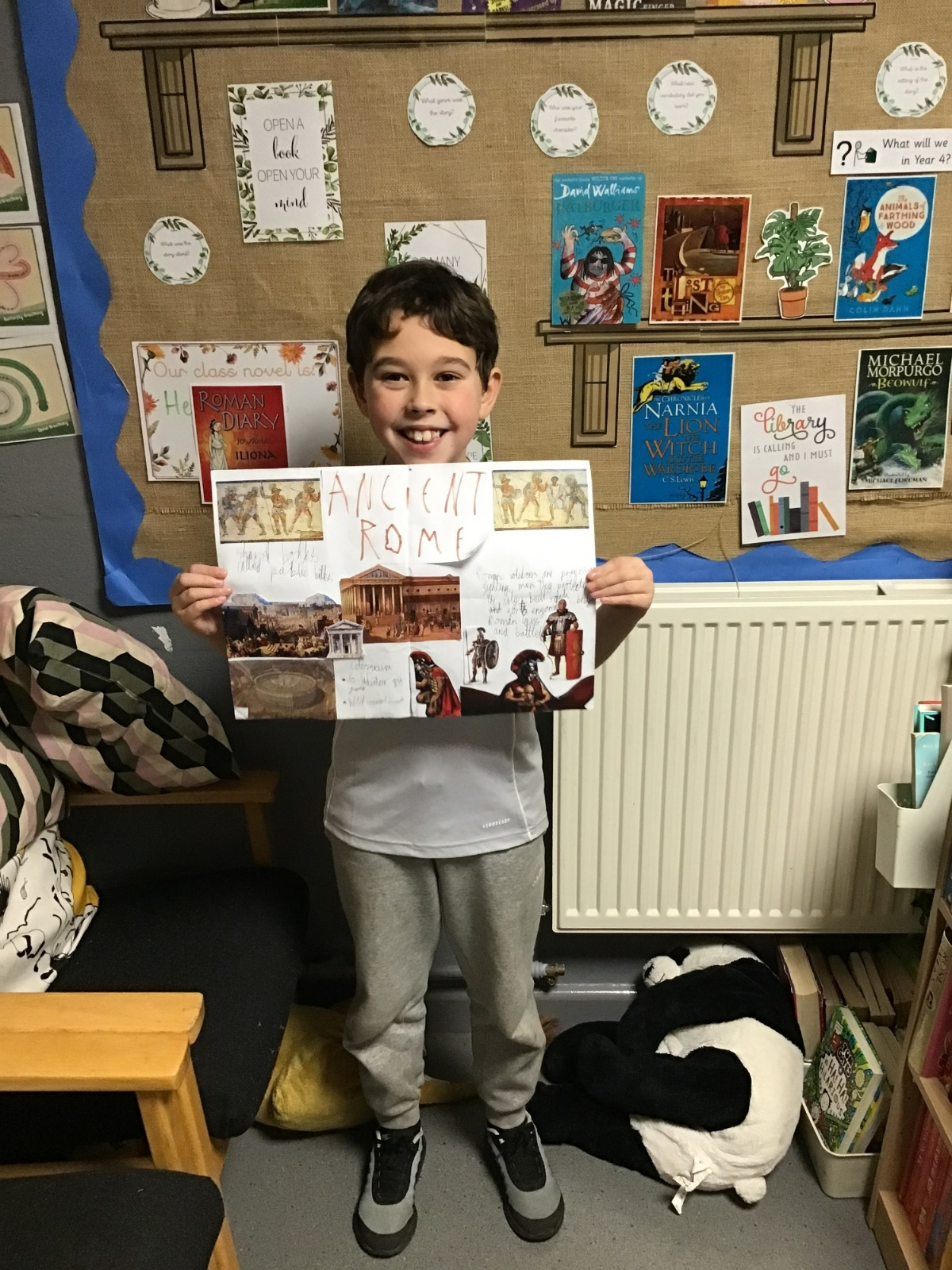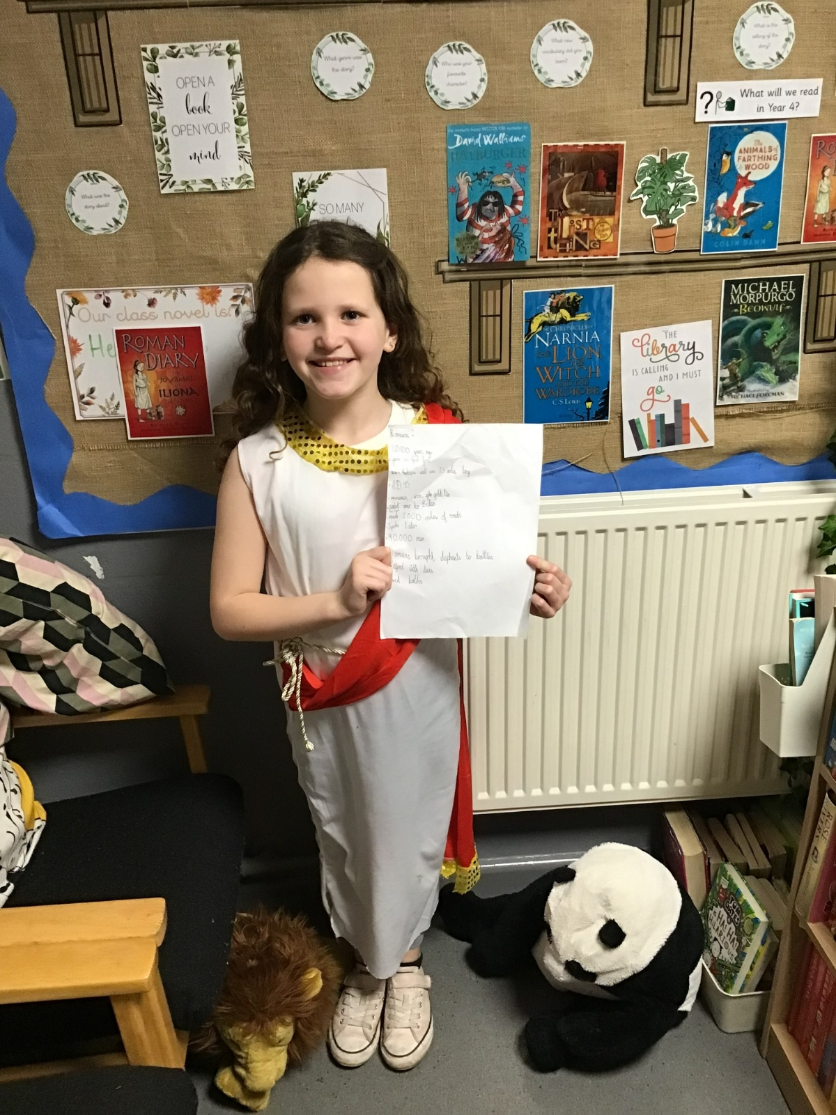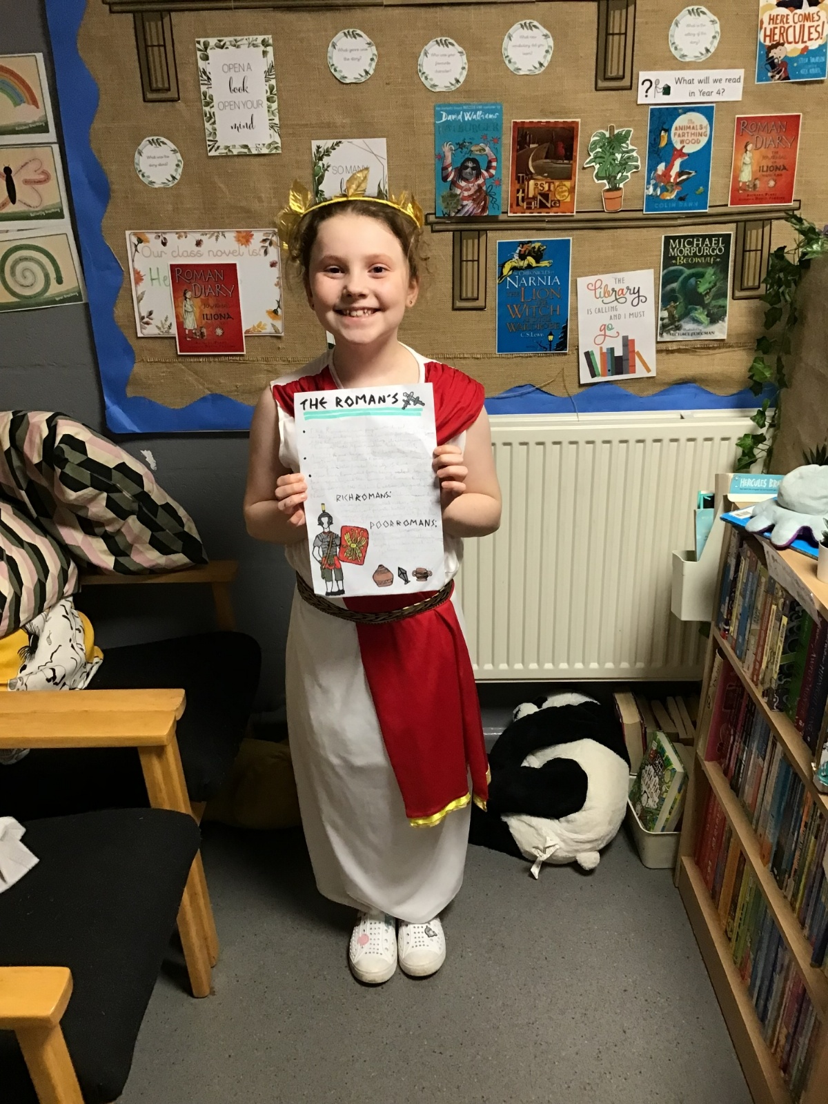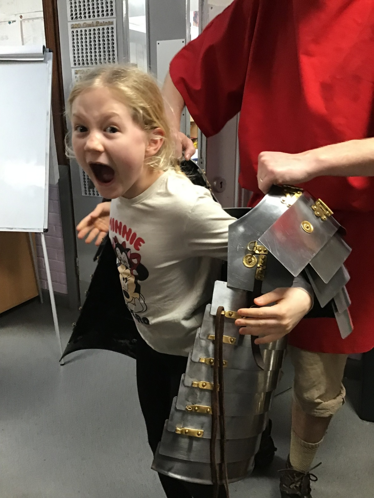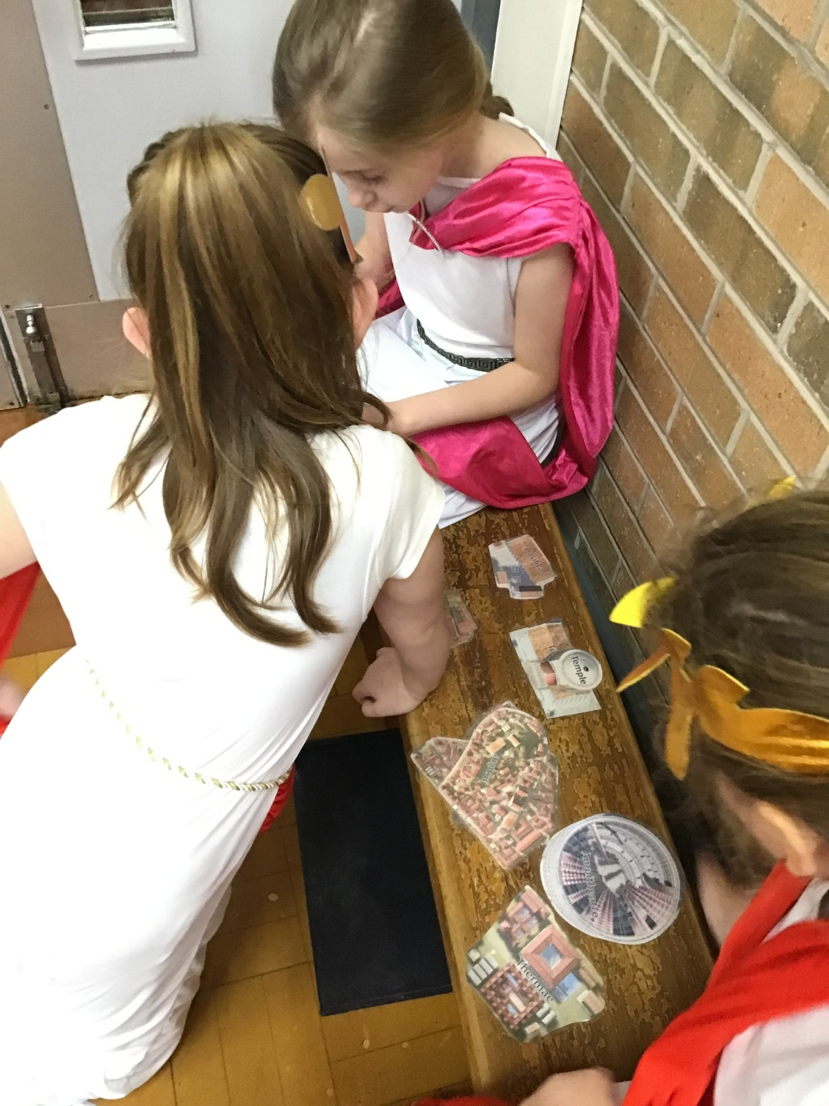 On Wednesday, Year 4 had the pleasure of taking part in an exciting day where we learnt all about the Romans. Joseph - from Ancient Visitor - came in to teach the children all about the Romans through a variety of fun-filled, engaging and immersive activities. We tried on Roman armour and explored a range of Roman artefacts to understand how soldiers and citizens lived. These artefacts included Roman coins - we had a great discussion about how the coins differ from the ones we use today, a toilet brush, a very odd sponge and a wax block which they used to write on. We also designed our own Roman village, thinking carefully about buildings and layout and even learnt to speak some Latin words and phrases. The children played traditional Roman games such as knuckles and took part in their own Roman battle to experience how the army trained. We also acted out Roman stories, which helped us remember key events and deepen our understanding in a fun and memorable way.