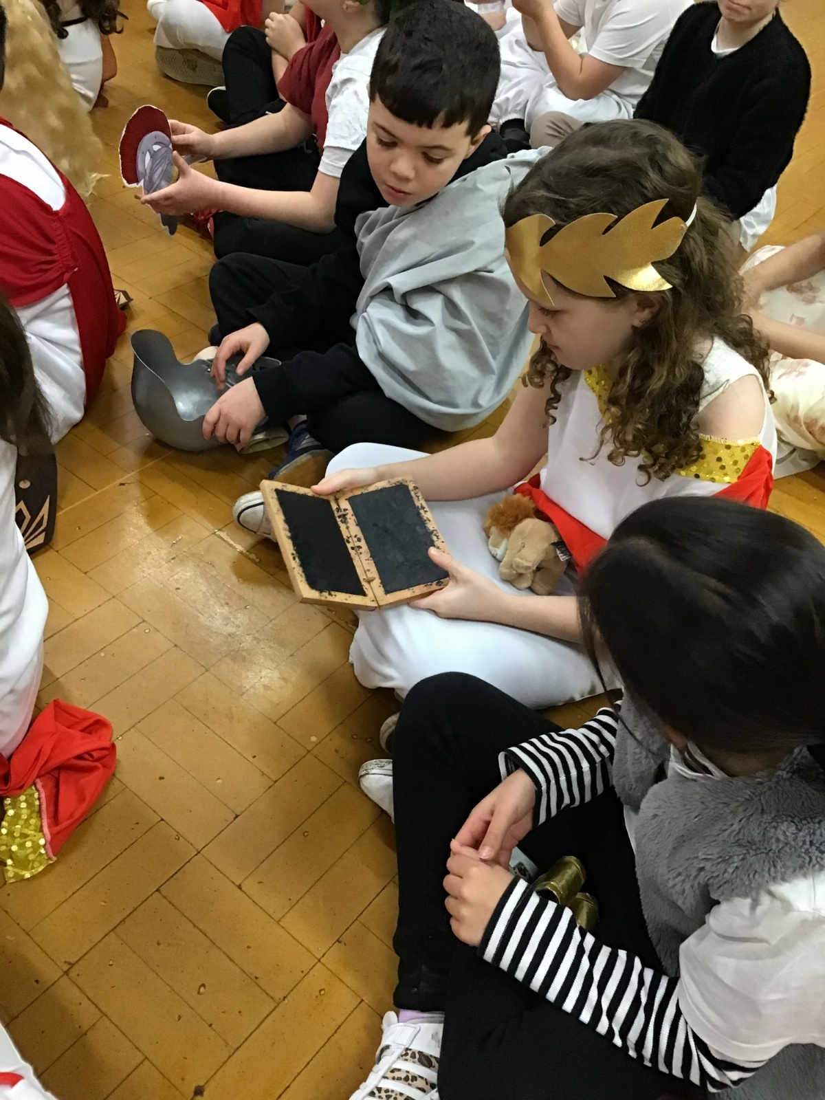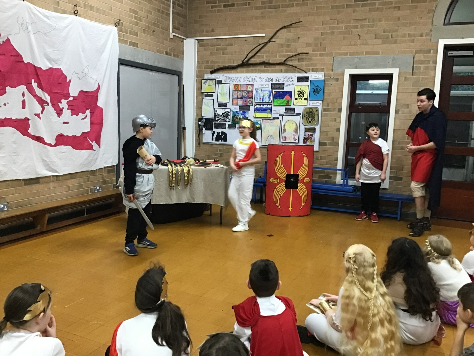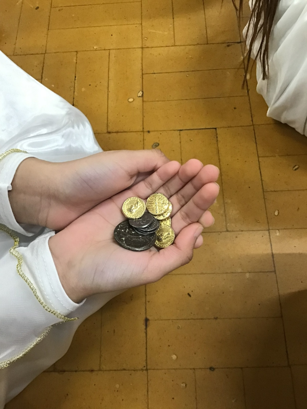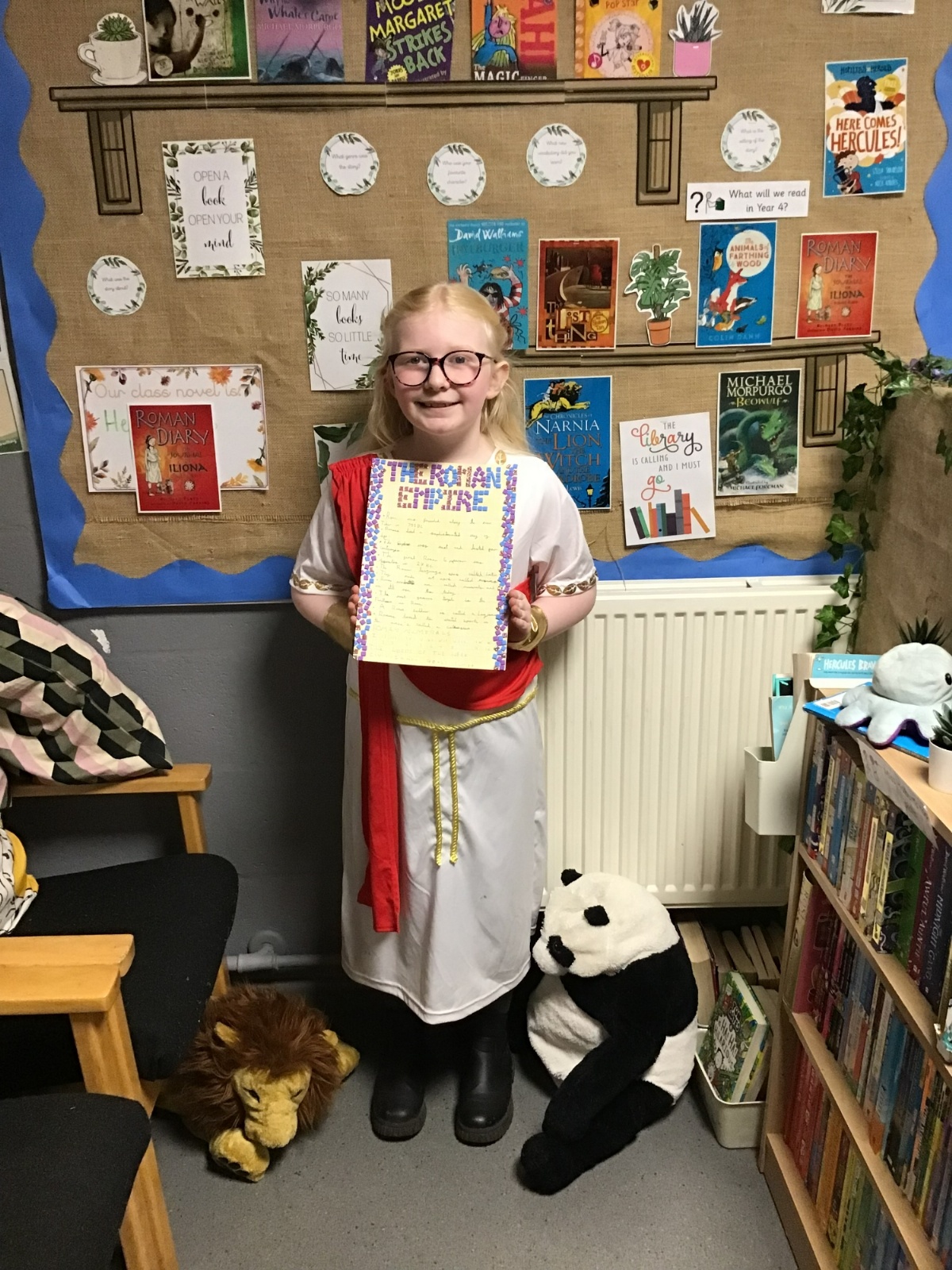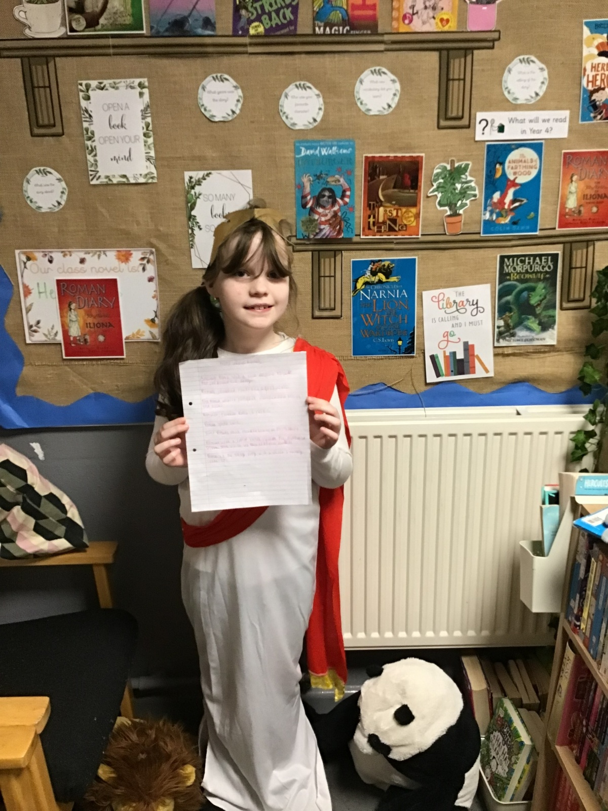 On Wednesday, Year 4 had the pleasure of taking part in an exciting day where we learnt all about the Romans. Joseph - from Ancient Visitor - came in to teach the children all about the Romans through a variety of fun-filled, engaging and immersive activities. We tried on Roman armour and explored a range of Roman artefacts to understand how soldiers and citizens lived. These artefacts included Roman coins - we had a great discussion about how the coins differ from the ones we use today, a toilet brush, a very odd sponge and a wax block which they used to write on. We also designed our own Roman village, thinking carefully about buildings and layout and even learnt to speak some Latin words and phrases. The children played traditional Roman games such as knuckles and took part in their own Roman battle to experience how the army trained. We also acted out Roman stories, which helped us remember key events and deepen our understanding in a fun and memorable way.